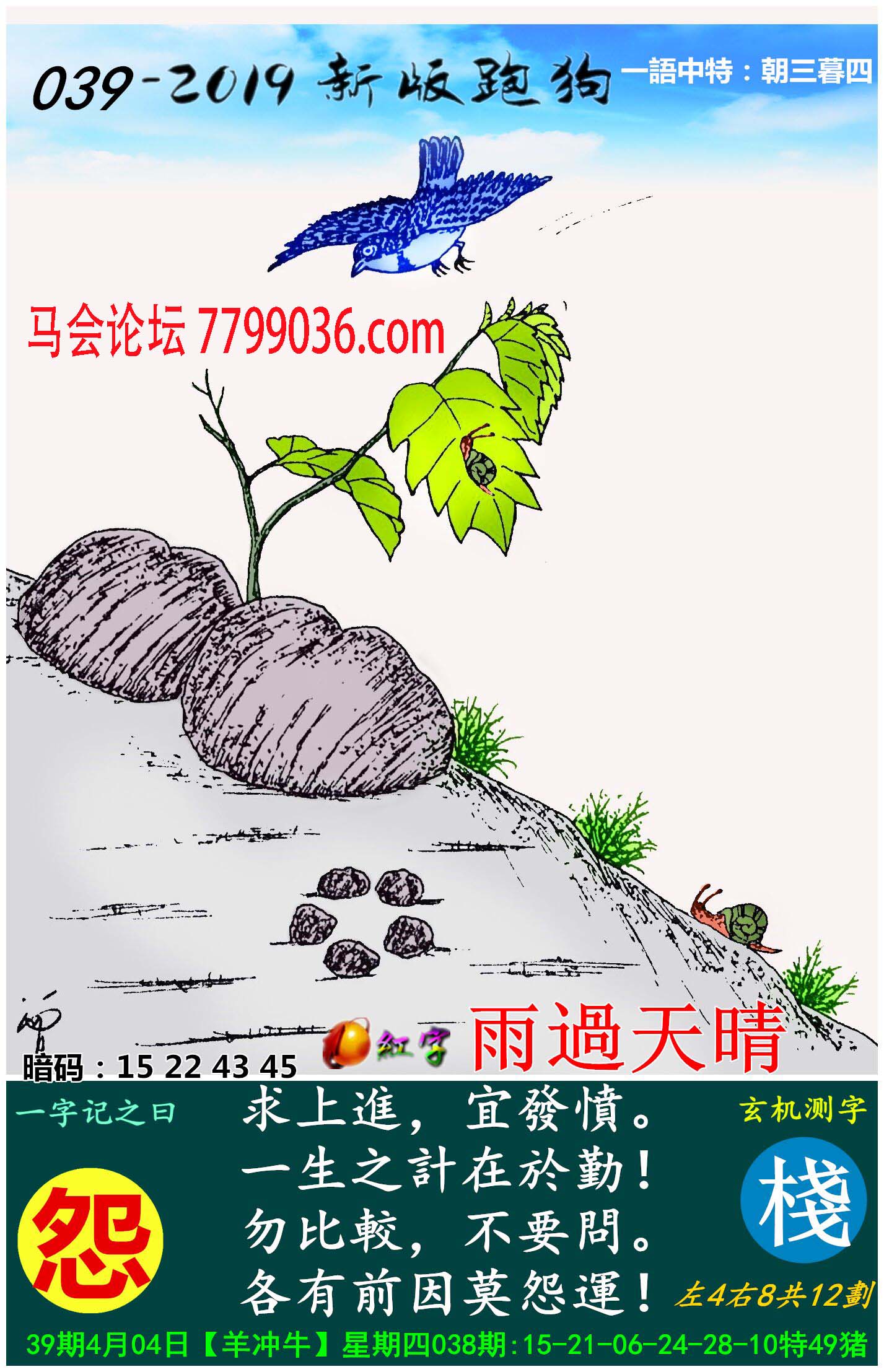 039期新版跑狗一字記之曰:【怨】