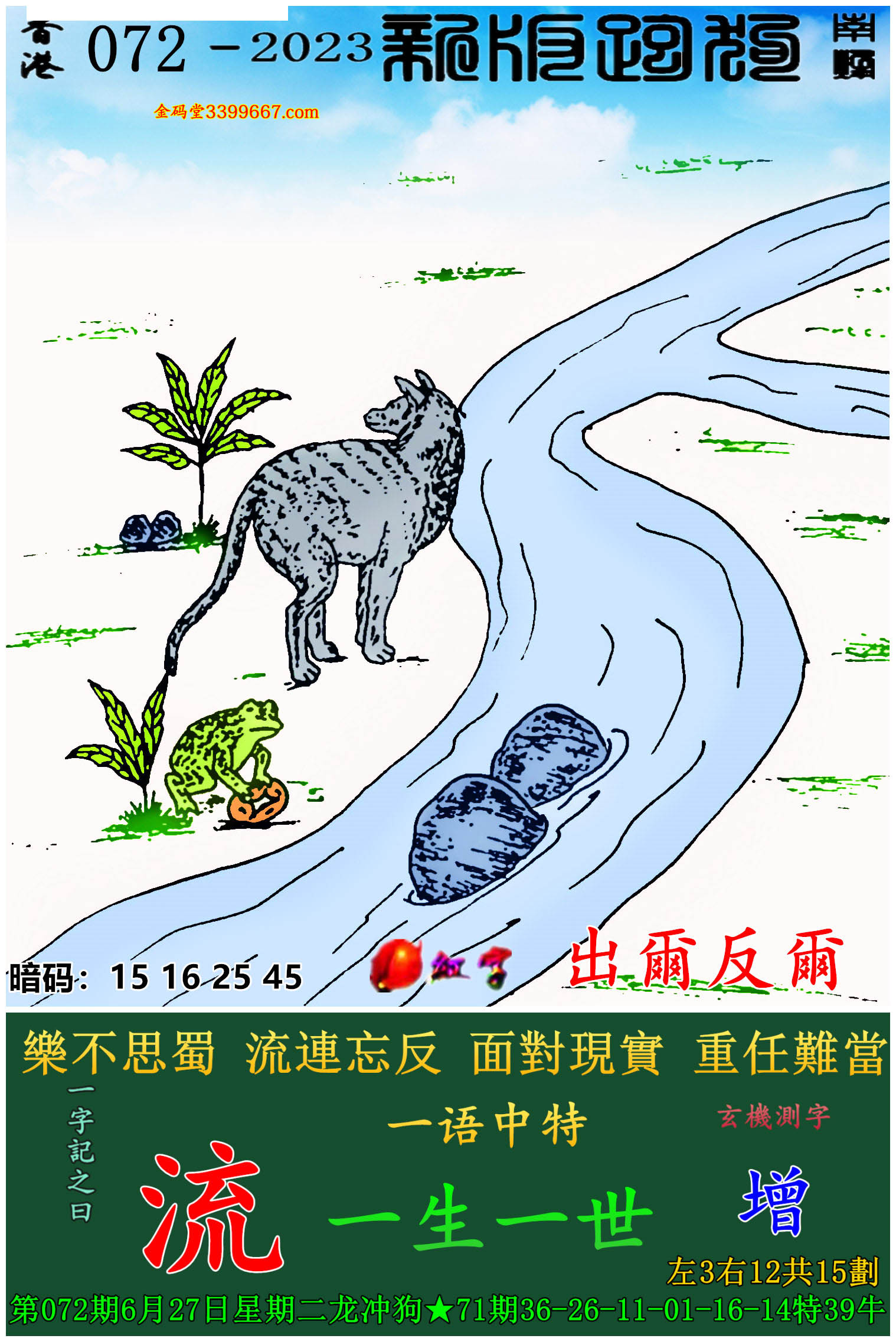 072期:新版跑狗一字記之曰【流】玄機測字:《增》