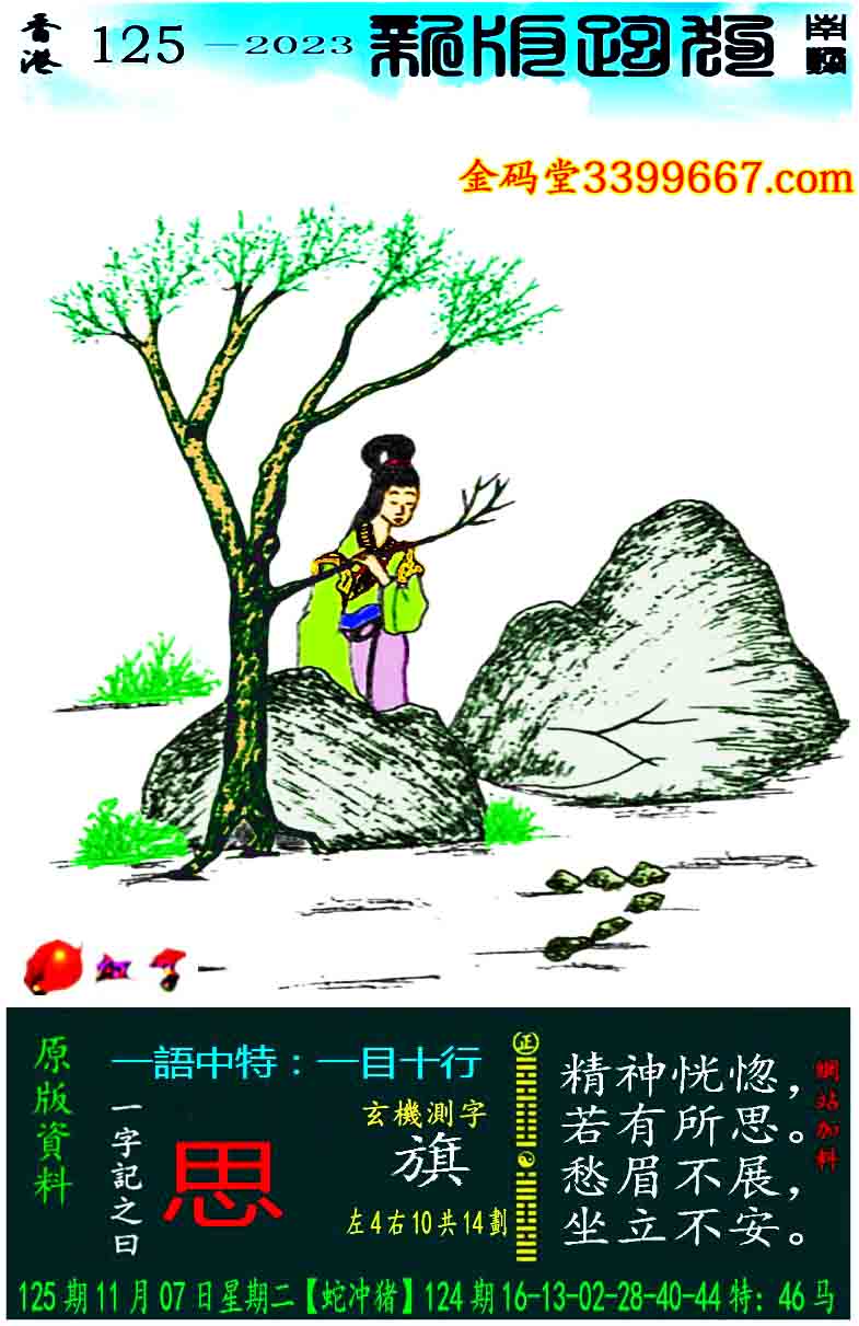 主题 : 125期:新版跑狗一字記之曰【思】玄機測字:《旗》