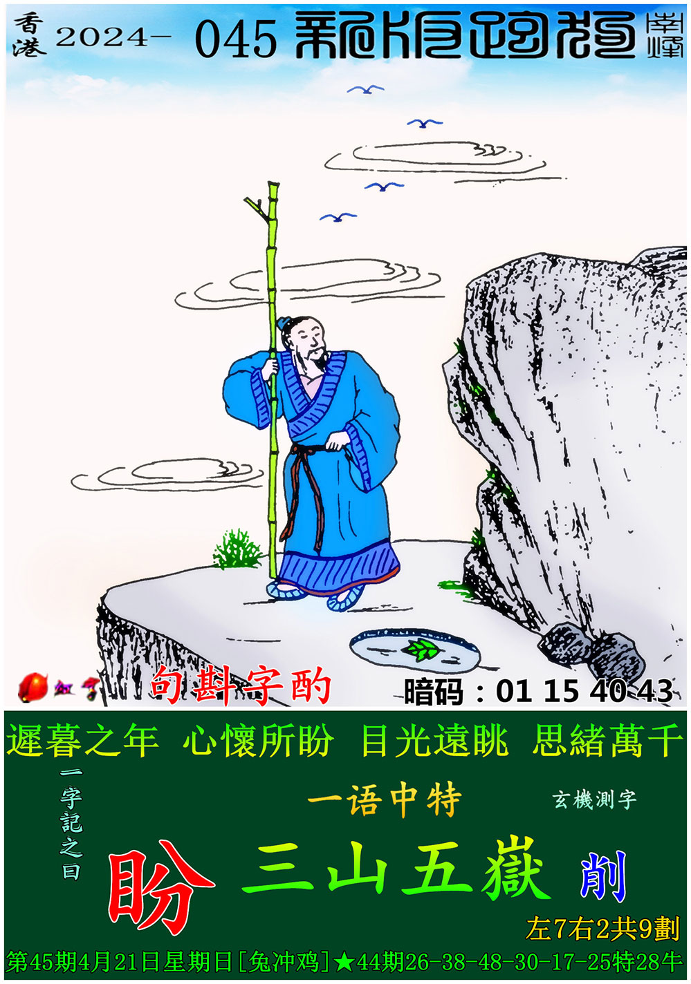 045期:新版跑狗一字記之曰【盼】 玄機測字:【削】