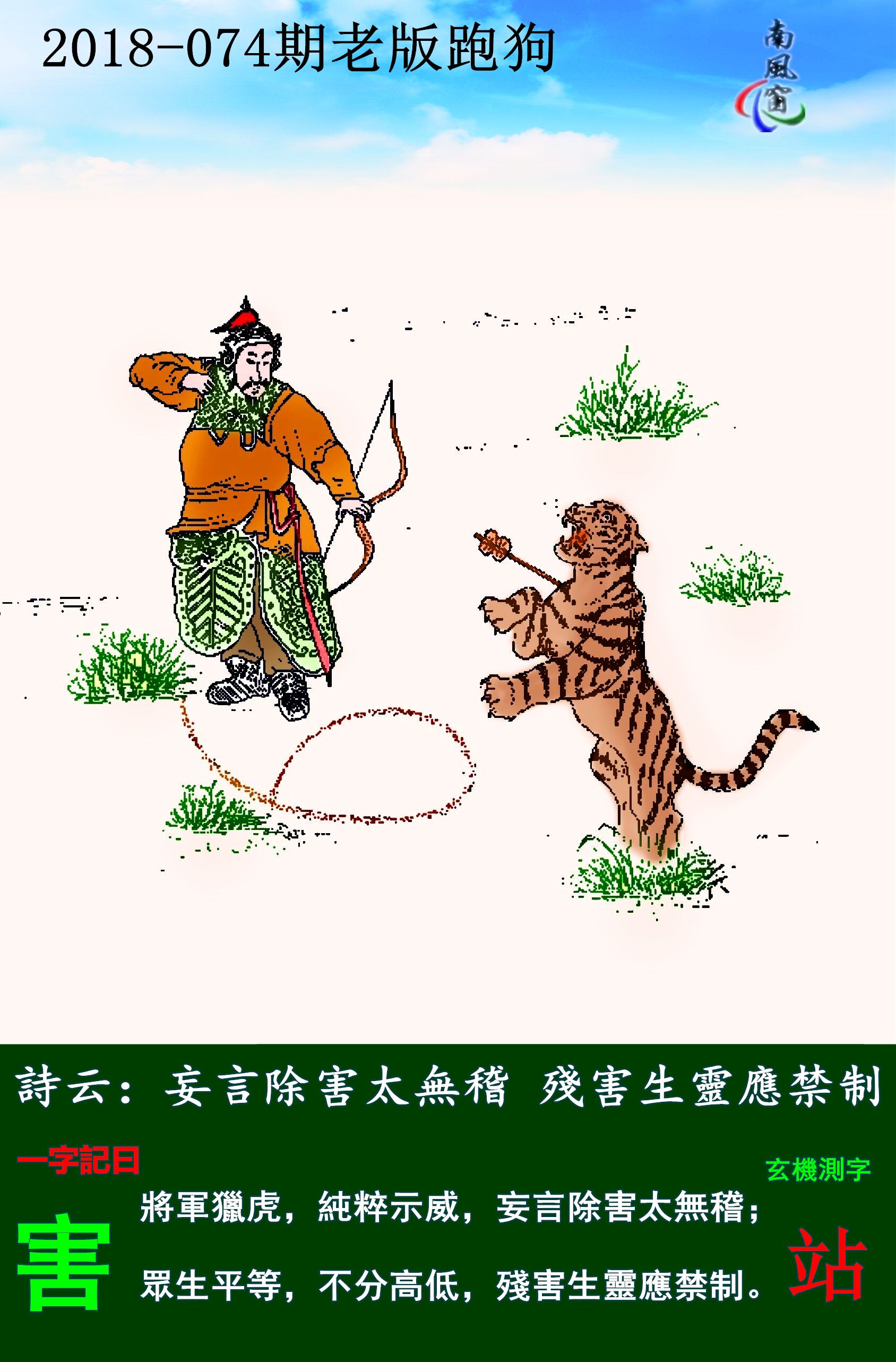 074期老版跑狗一字記之曰:【害】