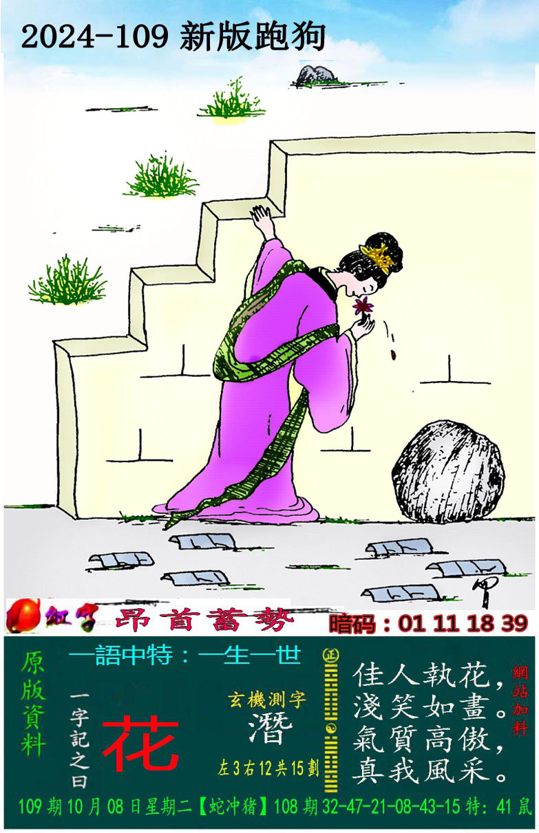 主题 : 109期:新版跑狗一字記之曰【花】 玄機測字:【潛】