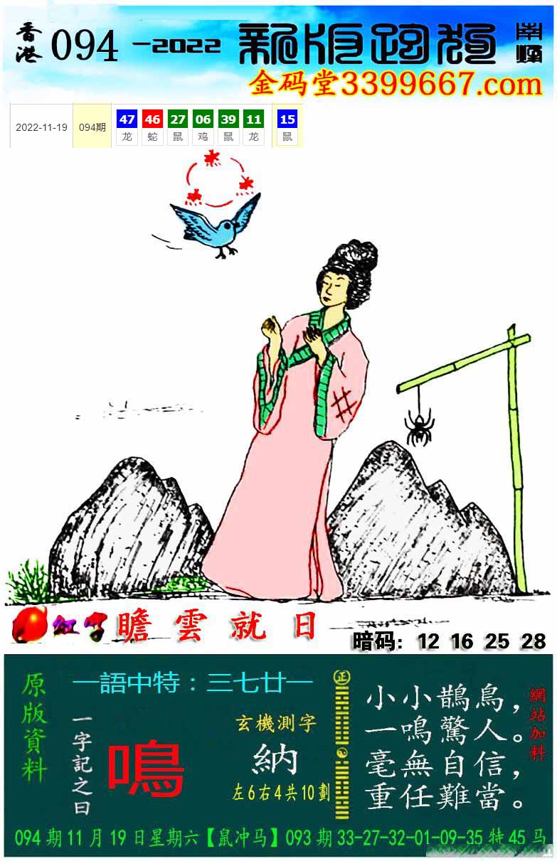 084期:新版跑狗一字記之曰【飛】 玄機測字:【謂】