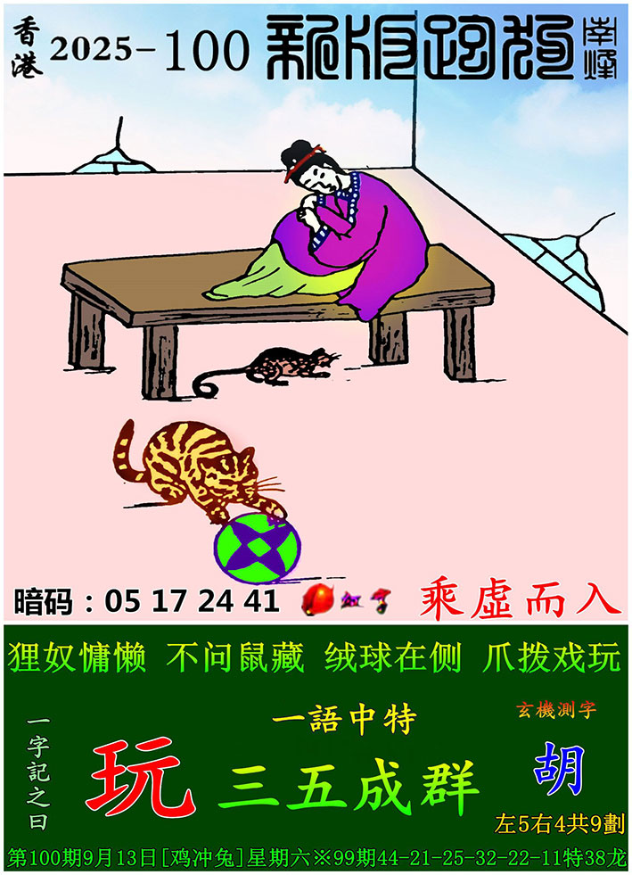 主题 : 100期:新版跑狗一字記之曰【玩】 玄機測字:【胡】