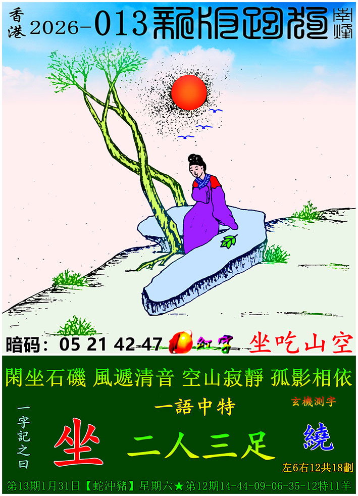 013期新版跑狗一字記之曰:【坐】