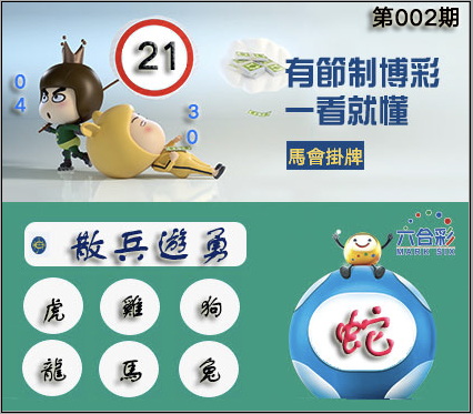 002期正版彩图挂:21 爆:蛇 挂牌成语:散兵游勇 挂牌出肖:虎鸡狗龙马兔