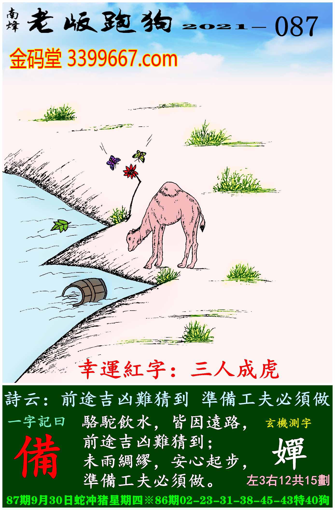 087期老版跑狗一字記之曰:【備】