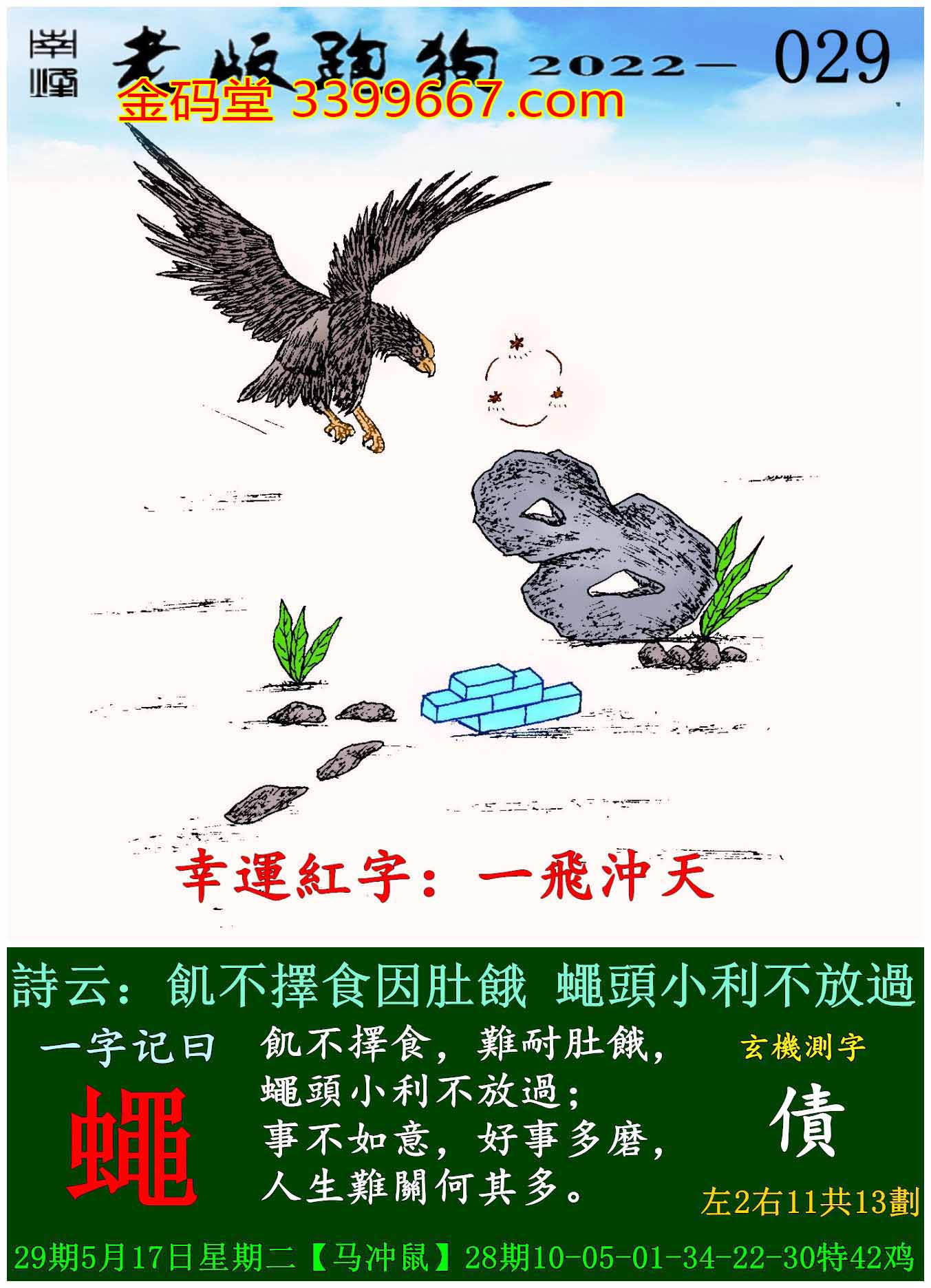 主题 : 029期老版跑狗一字記之曰:【蠅】玄機測字:《債》