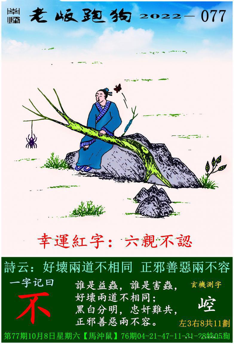 077期老版跑狗一字記之曰:【不】