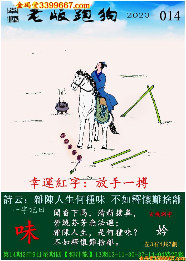 014期老版跑狗一字記之曰:【味】