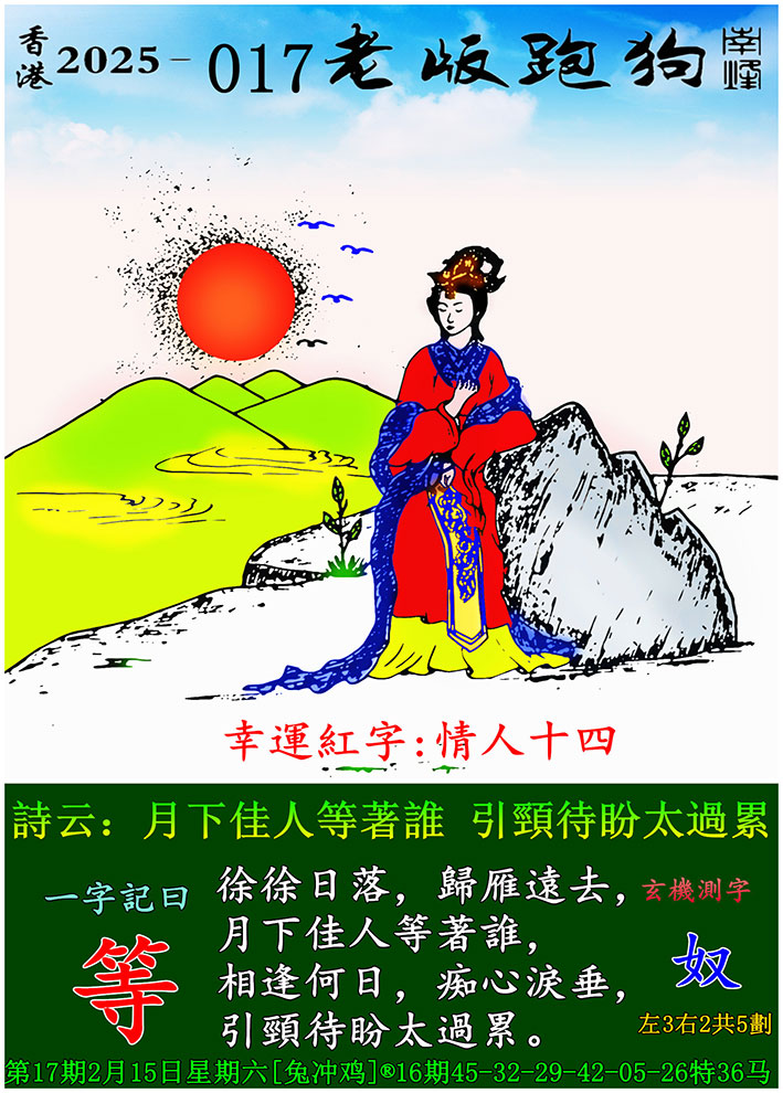017期老版跑狗一字記之曰:【等】 玄機測字:《奴》