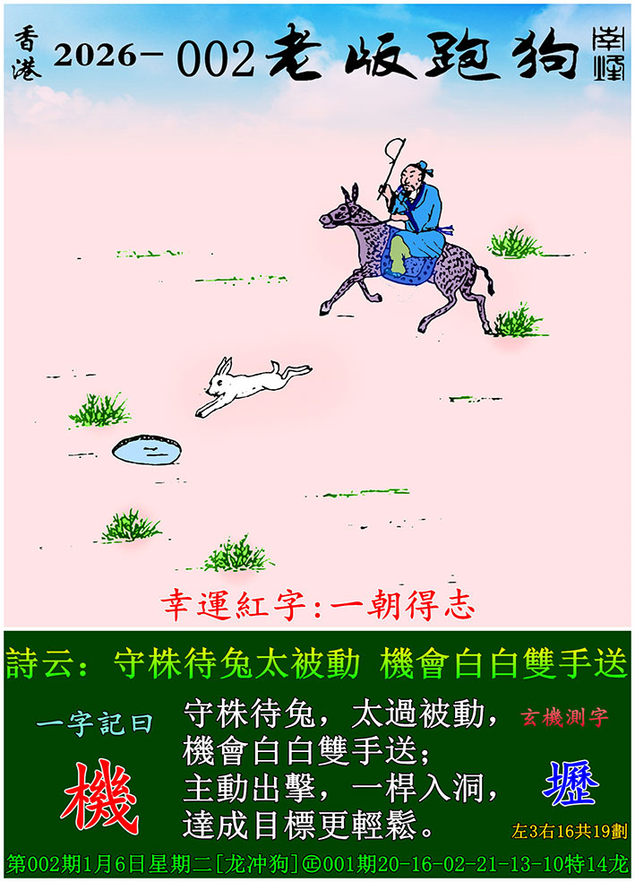 002期老版跑狗一字記之曰:【機】 玄機測字:《壢》