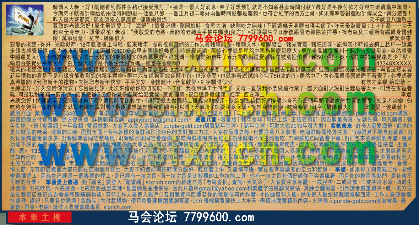【4】敬業的老總您好!從年初加人一個群接觸到您的信箱信件內容到現在也大半年,也是初舉者,希望您老不嫌棗我,信回去了幾封無下文 退回。但道次是先報喜的,再者是您老要新年禮物的看是不是有緣分能收到您的新年禮物。群中六友說狗圖綜合解小白。也沒多問,也就抱著試試的心包了50塊的肖。居然中了,内心高興得居然睡不著覺了。心裡想著真希望能收到您新年的禮物。先祝您老新年快樂、平平安安、身體健壯、合家歡樂。红字驕陽似火 ---有您才幸福 給您敬上
